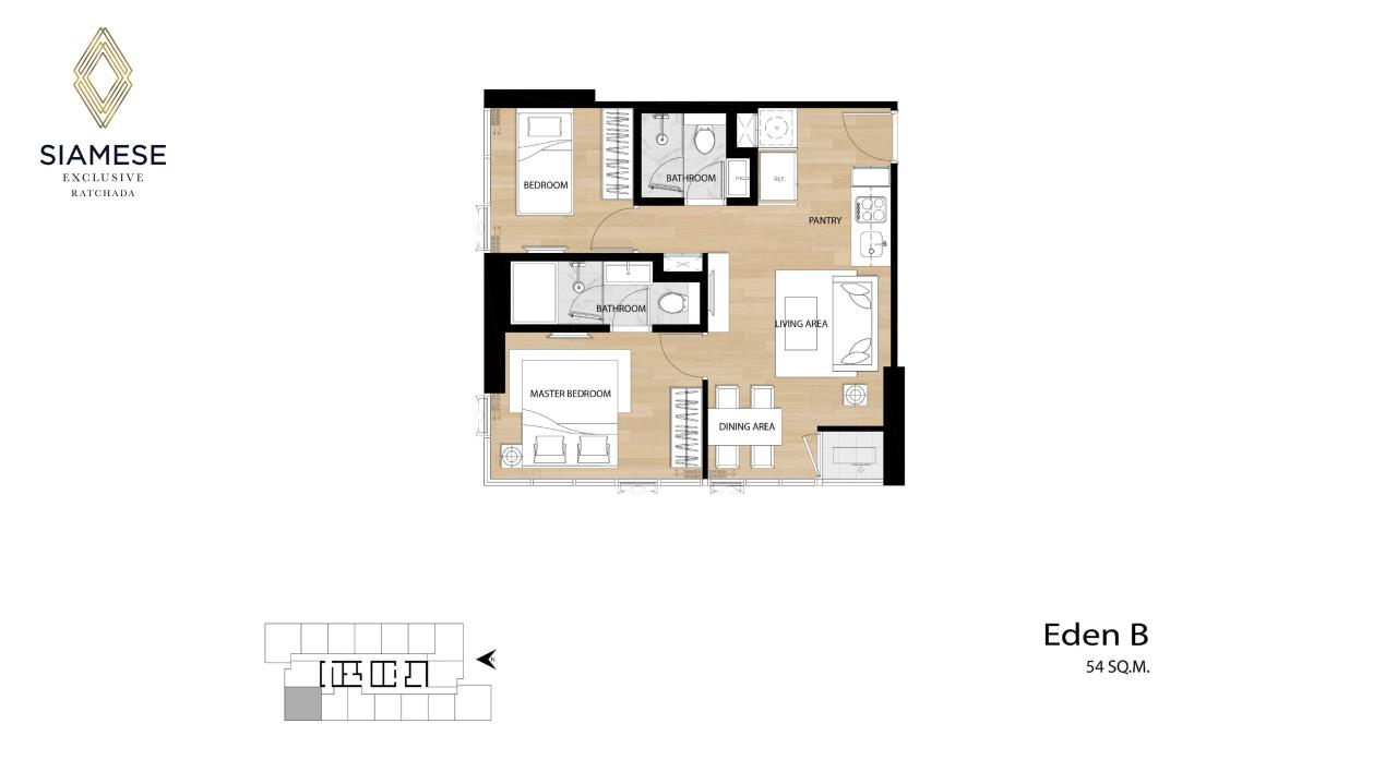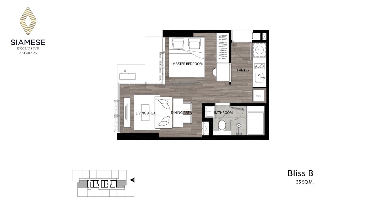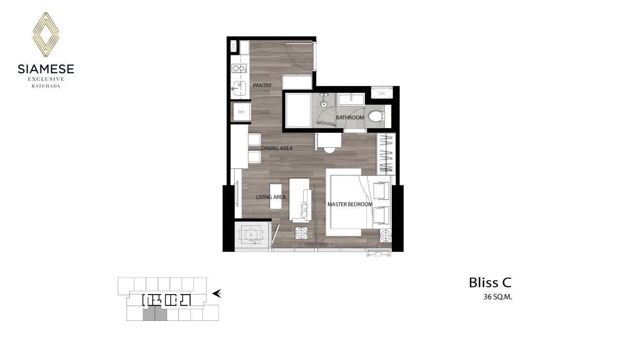 Condo For Sale, 1 Bedroom 1 Bathroom, Living area36 SQM, 36 Floor, Siamese Exclusive Ratchada.